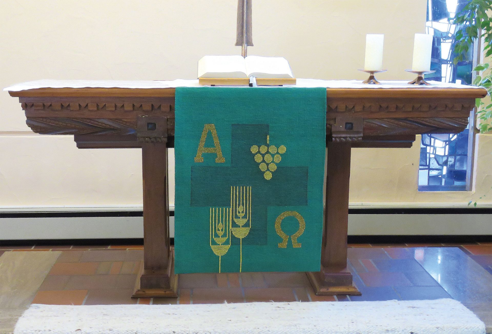 In Altar und Kanzel der neuen Kirche fanden Balken aus der Empore unserer alten Kapelle eine neue Heimat.